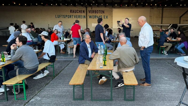 Mit guten Gesprächen, vielen Erinnerungen an frühere Zeiten und einem Blick auf die stolze Vereinsgeschichte klang der Abend im Hangar aus. Das 75-jährige Jubiläum hat einmal mehr gezeigt: Der LSV Worms ist weit mehr als ein Sportverein – er ist eine Gemeinschaft, die Menschen zusammenbringt und das Fliegen in all seinen Facetten lebt. Trotz der derzeitigen Probleme sind die Vereinsmitglieder des LSV Worms bereit für den weiteren Erhalt des Flugplatzes und des Flugsports – besonders des Segelflugs – zu kämpfen.