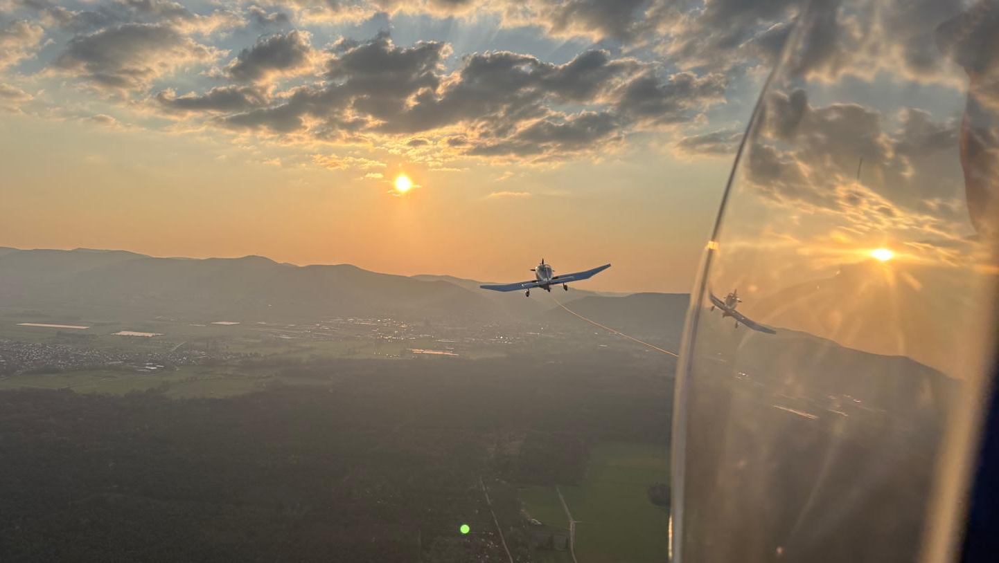 Das musste man nicht zweimal sagen: schon steht der Doppelsitzer am Start und der Fluglehrer macht es sich zu diversen Überprüfungsflügen im hinteren Cockpit bequem. Wenn der Pilot vorne es trotz langer Winterpause drauf hat, kann dann auch schon während des Flugzeugschlepps ein Schnappschuss durch das Haubenfenster gemacht werden…