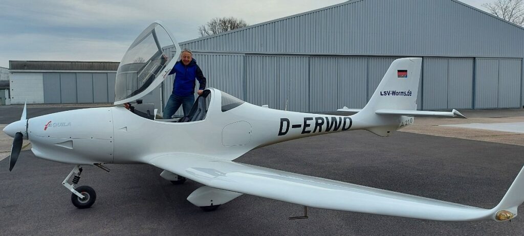 Der LSV Worms besitzt 2 Flugzeuge des Typs Aquila A210, einem modernen und sportlichen Zweisitzer. Besonders leise und Verbrauchsarm. 1,2m Kabinenbreite und Schalensitze für höchsten Komfort. Ausgestattet mit elektronischer Flugdatenanzeige (Glascockpit) und 7-Zoll-GPS.